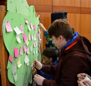 Dos alumnas de primaria y cuatro alumnos de secundaria, en representación del resto de sus compañeros han leído una redacción sobre cómo ven ellos la violencia contra la mujer y han colgado en el árbol de AFAMMER mensajes para protestar y mostrar su repulsa contra este tipo de violencia.