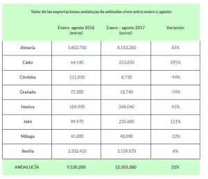 ya que en los primeros ocho meses de 2017 las exportaciones andaluzas incrementaron en un 31% hasta superar los 12 millones de euros (9,5 millones en los mismos meses de 2016).