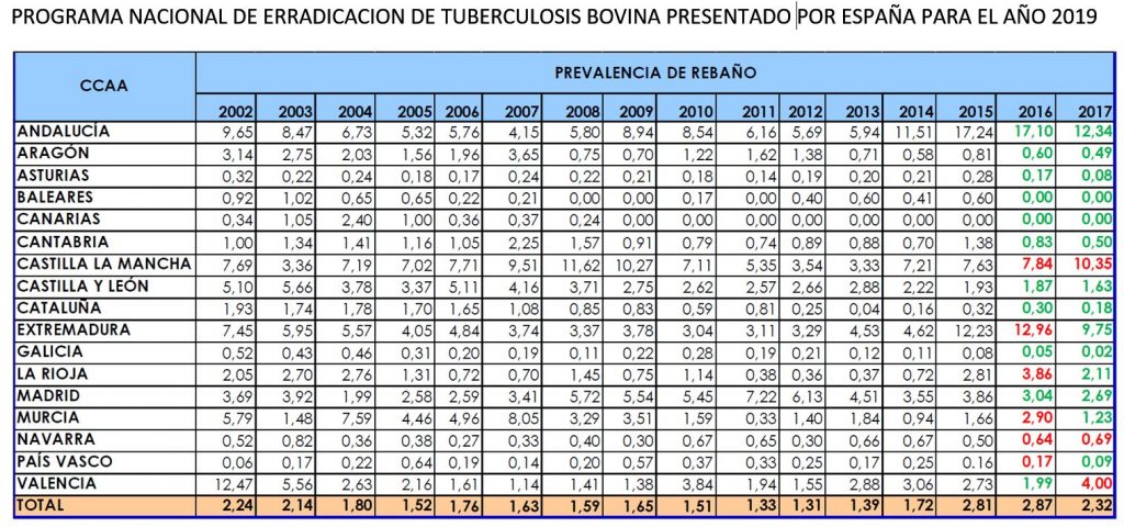 La evolución de los índices de tuberculosis bovina en Castilla-La Mancha está siendo motivo de preocupación para los ganaderos de la región. Según el programa nacional de erradicación de tuberculosis bovina para 2019, publicado recientemente por el MAPA, en Castilla-La Mancha se está produciendo desde 2011 un aumento constante de la incidencia de la enfermedad en la región que ha llevado a la Comunidad Autónoma a tener en 2017 (último dato que se recoge) los índices más altos de tuberculosis de España. En rebaños se alcanza una prevalencia de 10,35, que multiplica por más que cuatro la media nacional, y una incidencia del 5,26, siendo la media nacional del 1,15.