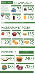 producción de alimentos y, apoyándose en la FAO, ha establecido un menú tipo con ensalada mixta, bistec con patata y yogur y ha revelado que, para poder ponerlo sobre la mesa se necesitan 7.750 litros de agua, lo que representaría un consumo anual de algo más 5,8 millones de litros de agua por ciudadano.