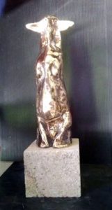 Asimismo, y con el deseo de potenciar la notoriedad y relevancia de este premio, el artista onubense Víctor Pulido ha diseñado una escultura singular en bronce sobre peana de granito, la cual traslada la pureza de una raza ovina, de tronco merino, así como la fertilidad de una tierra, la de las dehesas y estepas del suroeste de España en las que las ganaderías pastan de una manera natural y sostenible.