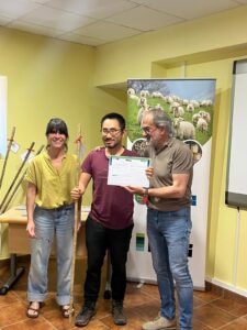 Los alumnos de este Formación internacional: entrega las acreditaciones al alumnado del curso intensivo ovino-caprino de leche 2024-2025 que han recibido el diploma han sido: Idoi Berasaluze de Orio (Gipuzkoa), de 39 años, carpintero que realiza trabajos forestales de desbroce y motosierra. Su objetivo es vivir en el terreno, gestionando la huerta, los árboles frutales y mantener bien los terrenos mediante ovejas y burros. La mayor parte de las prácticas las ha llevado en explotaciones caprinas y ovinas de Iparralde.