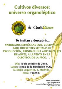 GastrOleum (App del virgen extra) y la Fundación Patrimonio Comunal Olivarero han organizado una cata de aceites de oliva virgen extra el próximo día 10 de octubre, miércoles, que la Fundación tiene en la calle Mejía Lequerica,1 en Madrid a las 19:00 h.