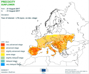 Los usuarios de este nuevo servicio también pueden seguir el progreso de una amplia gama de cultivos en toda la UE, incluyendo: trigo de invierno, cebada de primavera, maíz de grano, girasoles, patatas, centeno, remolacha azucarera y colza. Se muestran una serie de indicadores (tales como la etapa de desarrollo de los cultivos, la humedad del suelo, las lluvias alrededor de la floración, la cosecha y la siembra).