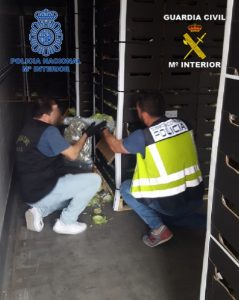 Los detenidos habían ocultado la marihuana en un tráiler que partió desde las inmediaciones de un polígono de Alhaurín de la Torre con dirección a Córdoba. Finalmente, el camión fue interceptado en el kilómetro 51 de la carretera A-45 y tras su registro, de casi cinco horas, los investigadores localizaron 170 kilos de marihuana oculta entre pales de lechugas.