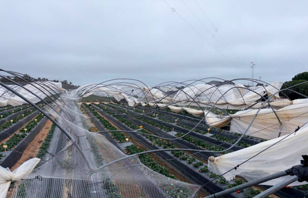 Freshuelva evalúa los daños causados por el carrusel de borrascas y solicita ayudas urgentes para el sector de los frutos rojos