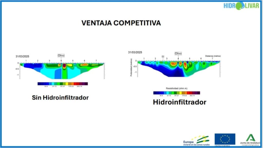 Los datos obtenidos en campo han confirmado una mejora significativa en la producción y en la calidad de la aceituna, así como un aumento en el rendimiento graso del fruto. En comparación con parcelas testigo sin hidroinfiltradores, las fincas que participaron en el proyecto mostraron una mayor disponibilidad de agua en el suelo, menor erosión hídrica y mejores resultados agronómicos.