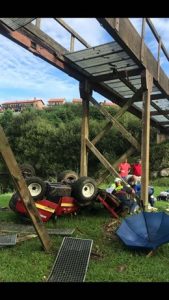 Asimismo, un hombre de 40 años resultó Herido tras caer desde unos cinco metros con un tractor en el campo de golf de Comillas cuando al cruzar un puente, se colapsaba la estructura, provocando que el afectado se precipitara junto a la máquina hasta el suelo, lo que le ha causado varias fracturas.