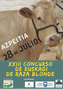 Como cada dos años, esta vez el 28 de julio sábado, vuelve el Concurso de Euskadi de Raza Blonde a Azpeitia. En esta edición, la 23ª, participaran sobre el centenar de animales distribuidos en 14 secciones (12 de hembras y dos de machos), provenientes de 7 ganaderías de Bizkaia y Gipuzkoa, todas ellas integradas en Programa de Mejora y Selección de la raza.